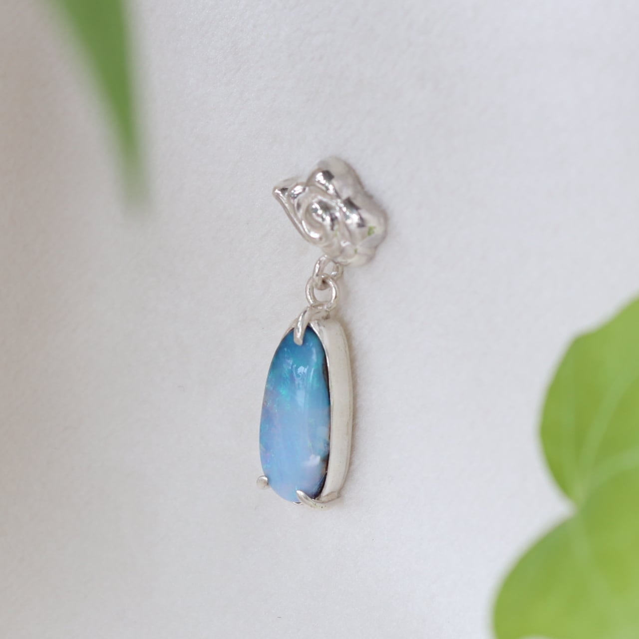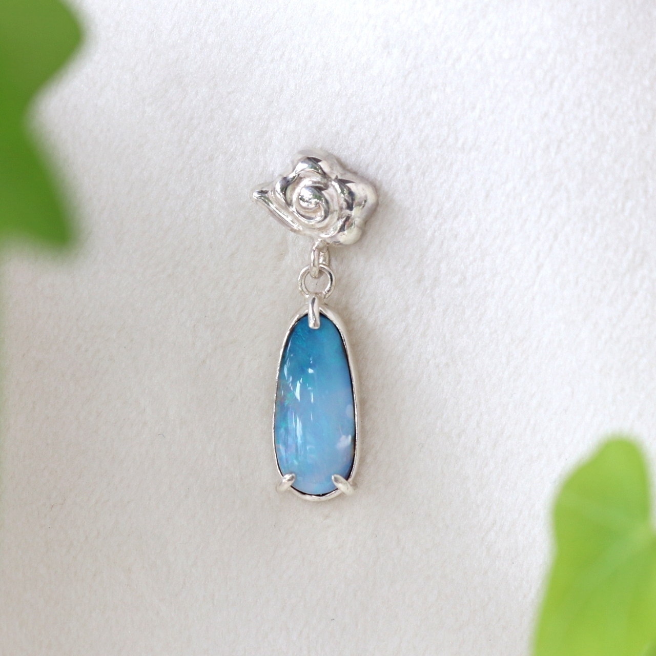 美しいブルーのきらめきを持つボルダーオパールを、オリジナルデザインの「瑞雲」にあわせてブローチに仕上げました。