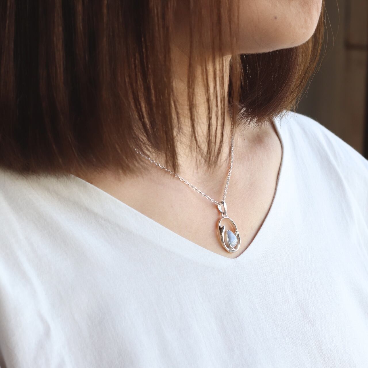 ラベンダーカラーの糸魚川ヒスイを、波を思わせるオリジナルデザインのシルバーのサークルで囲みペンダントトップにしました。