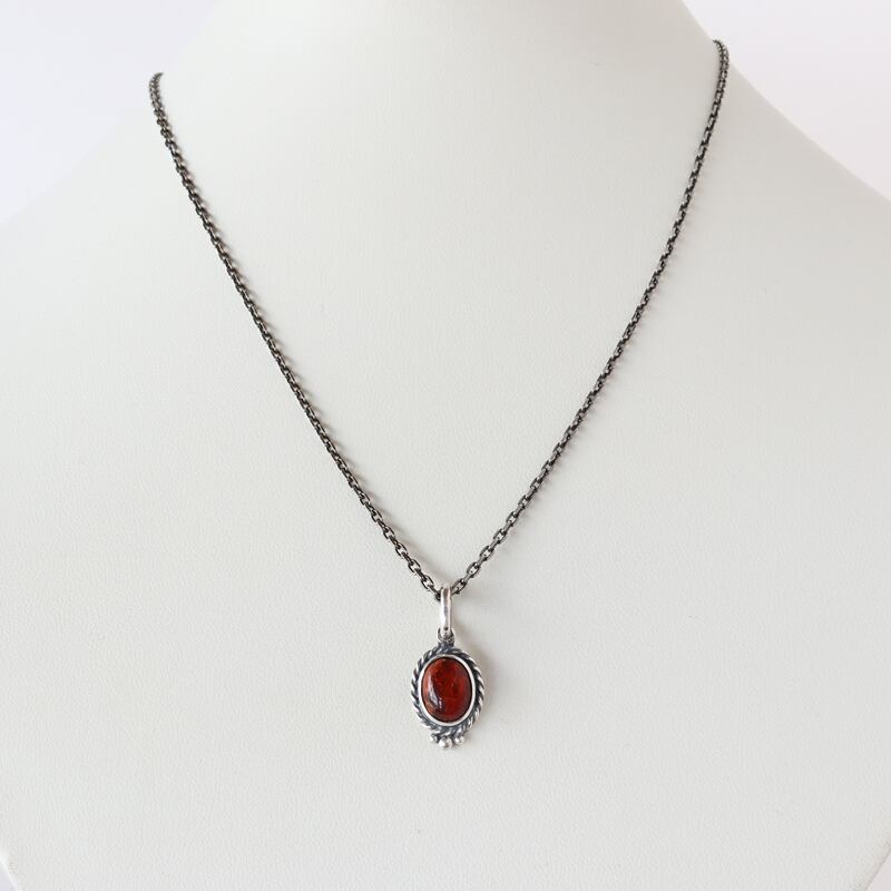 オレンジ色にキラリと光るマトリックスオパールを、小ぶりでシンプルなペンダントトップに仕上げました。