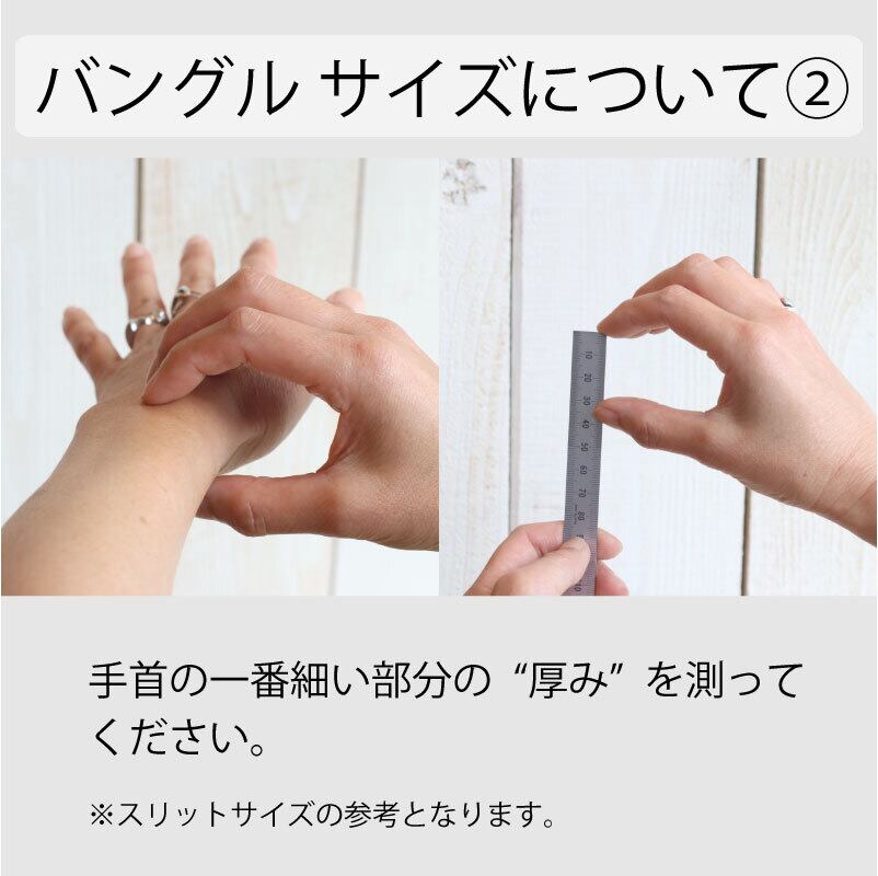 「周の長さ」がバングルの内周と同じか、やや短いとジャストサイズです。