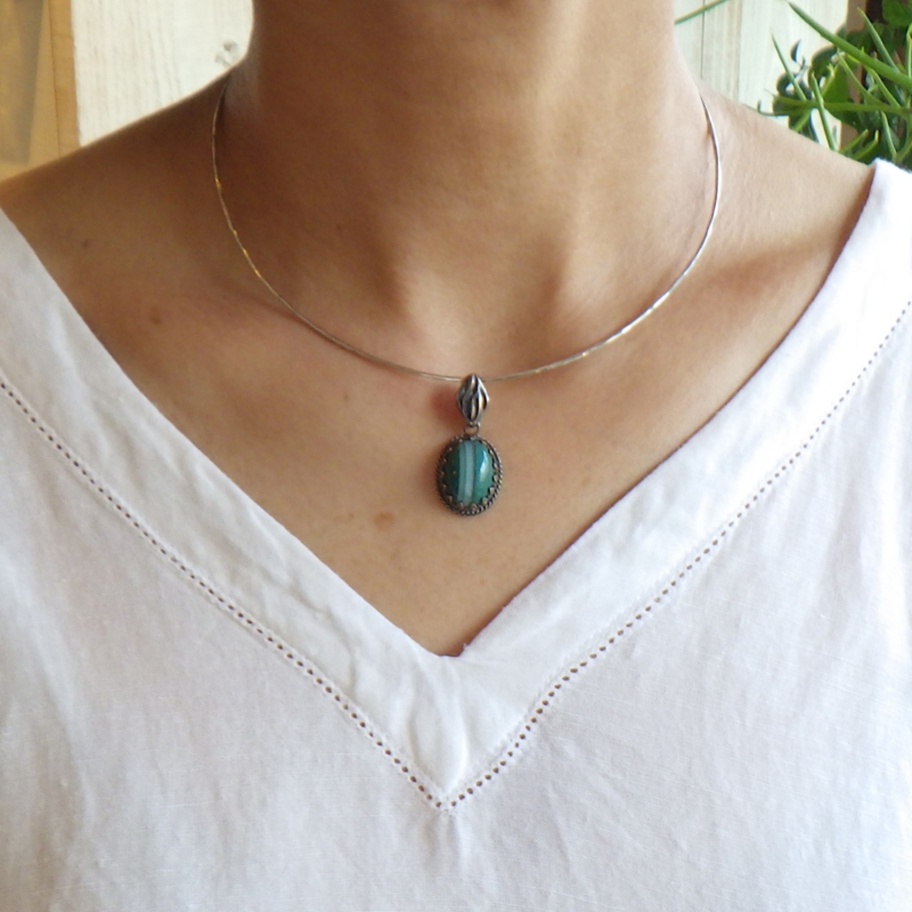シルバーを丸く叩いて、シンプルなチョーカーにしました。