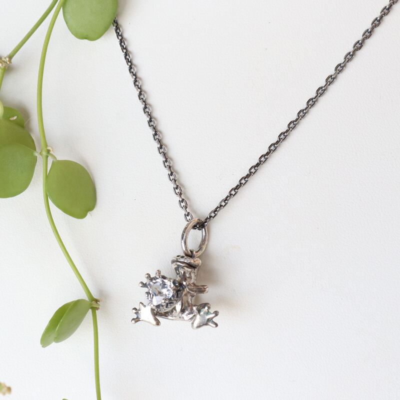 オリジナルデザインのカエルが、ハート型の天然石を抱えてます。