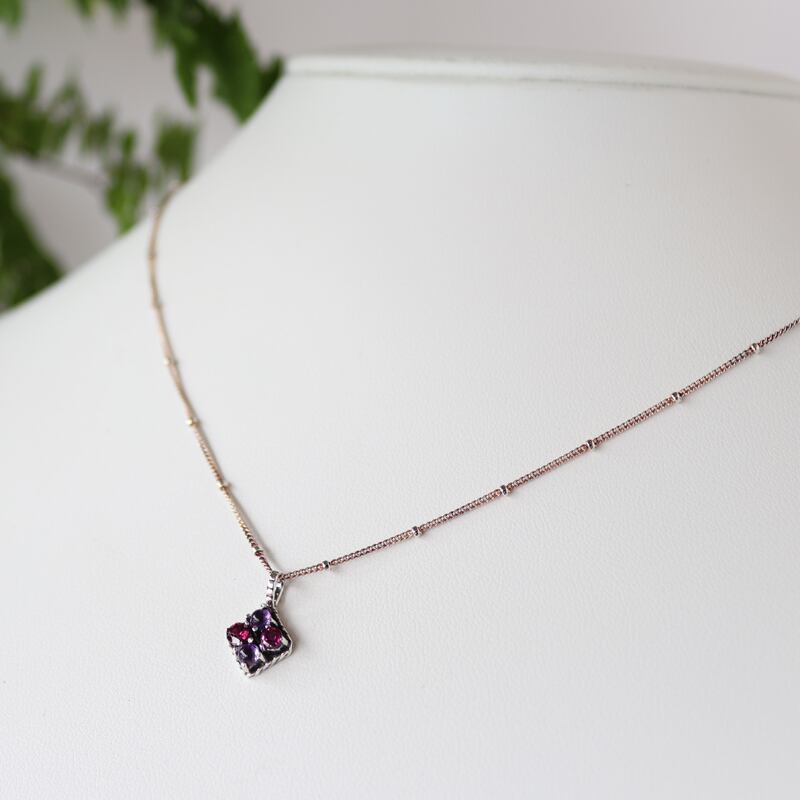 アメジスト・ロードライトガーネット シルバー925 ネックレス「カルテット」 つぶキラのチェーンつき ■送料無料■