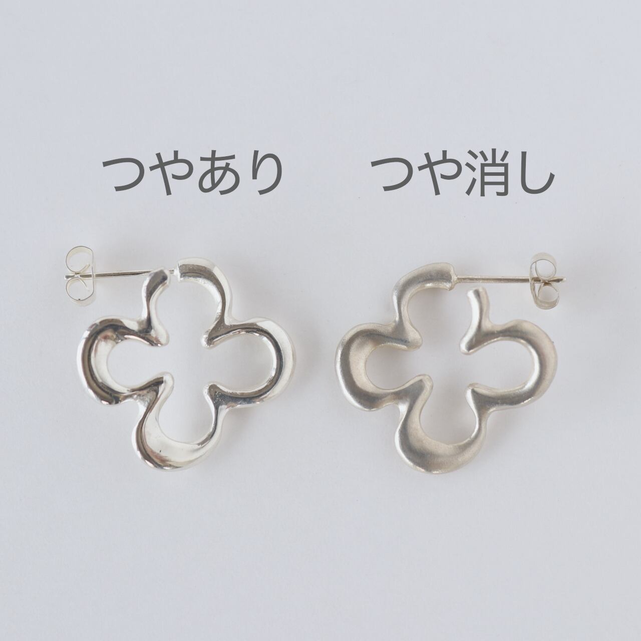 前から見ても横から見ても曲線を感じる柔らかい表情のピアス。