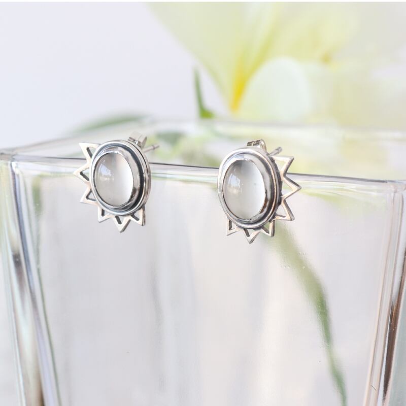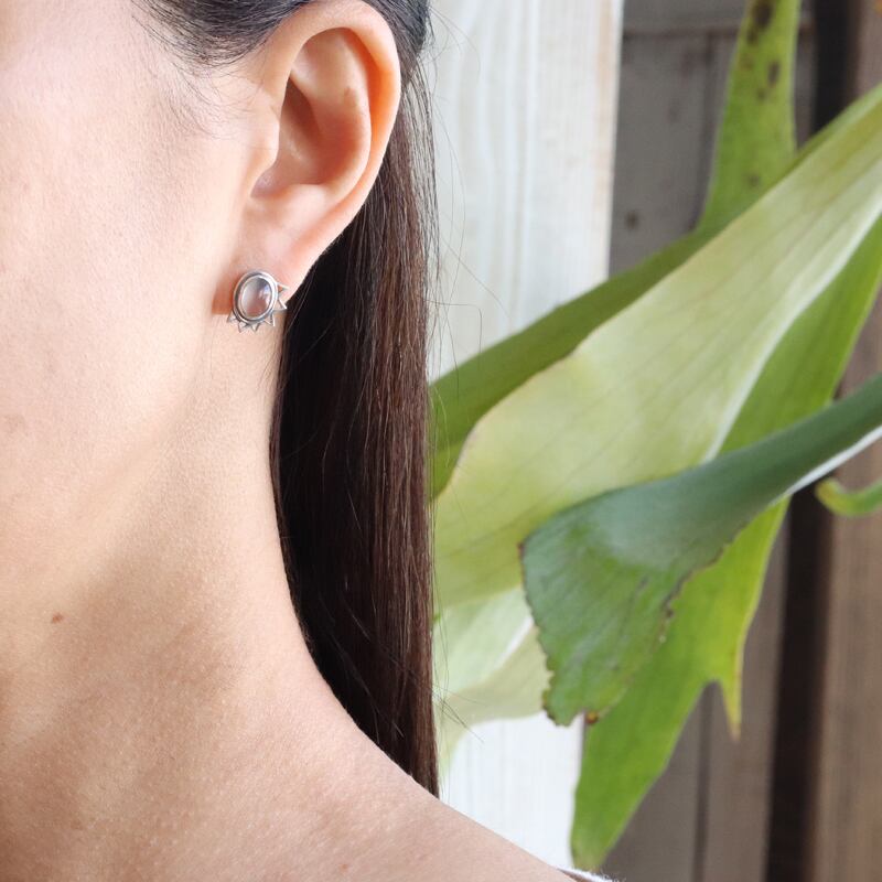 透明度の高いムーンストーンを半分囲んでピアスに仕上げました。