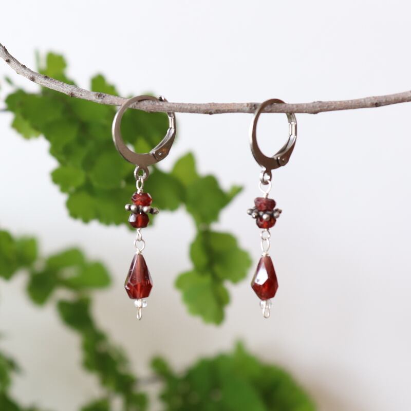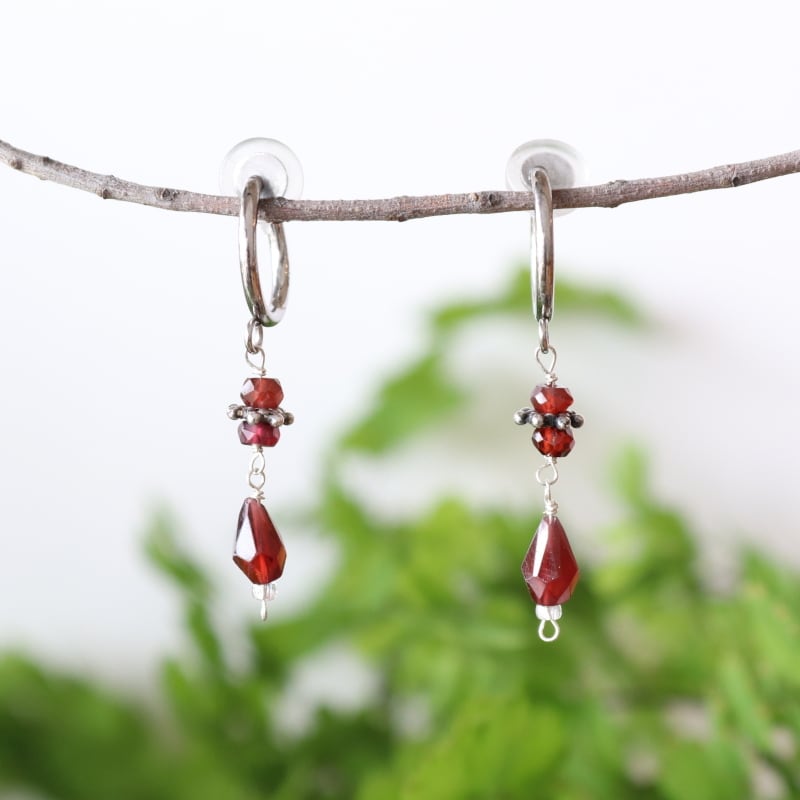 シルバーのパーツにボルドーレッドのガーネットを合わせてピアスに仕上げました。