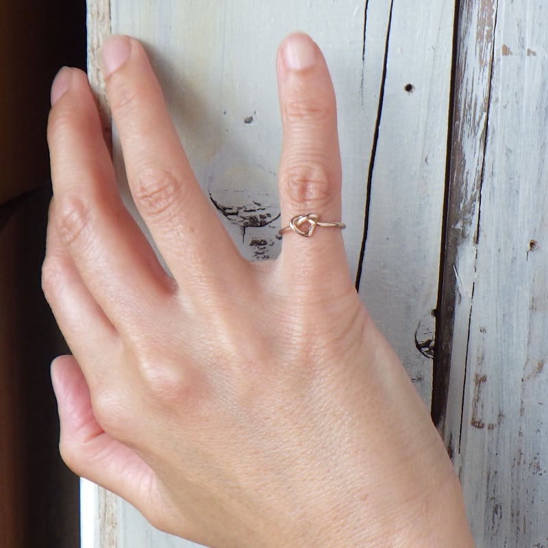 ピンクゴールドをきゅっと小さなハートに結びました。