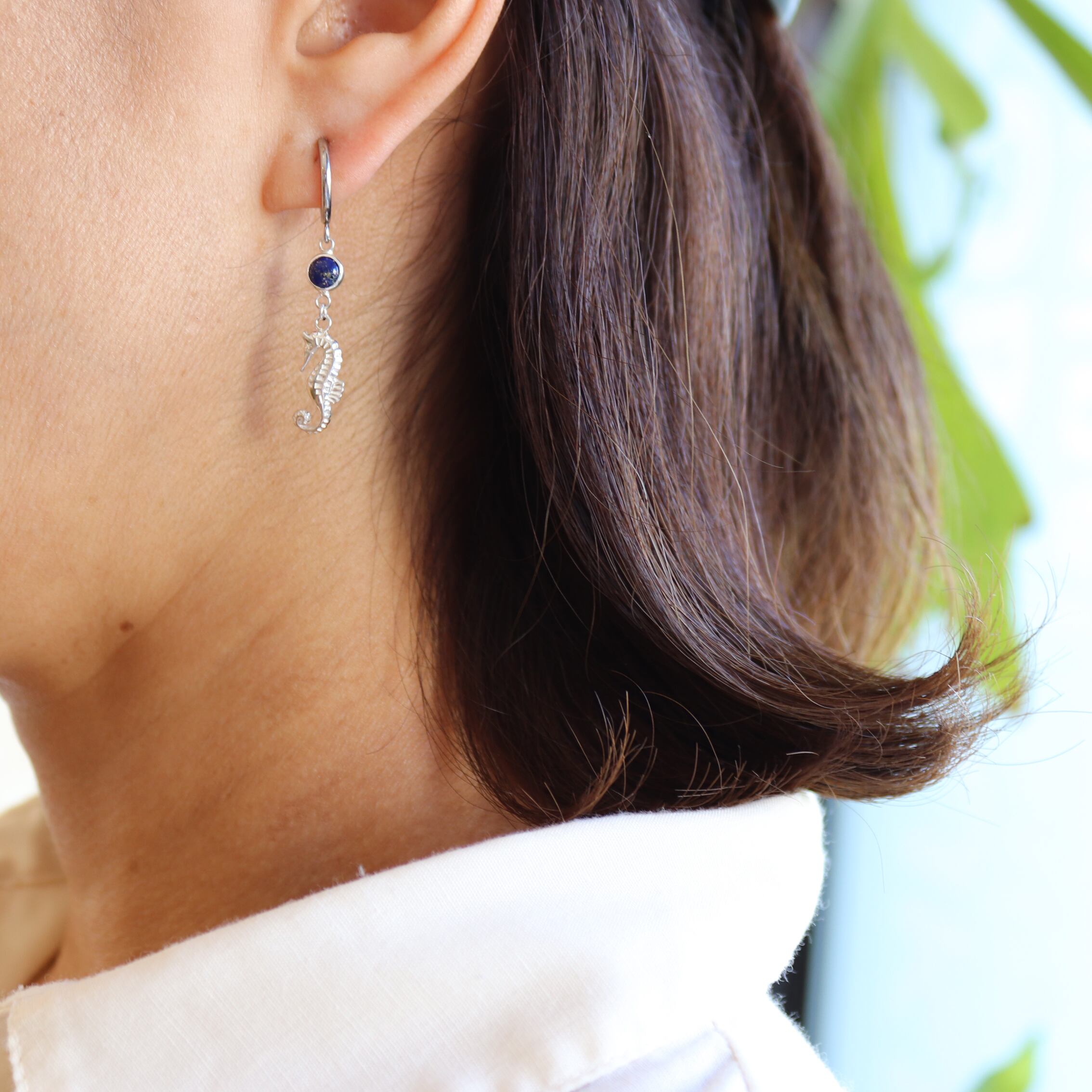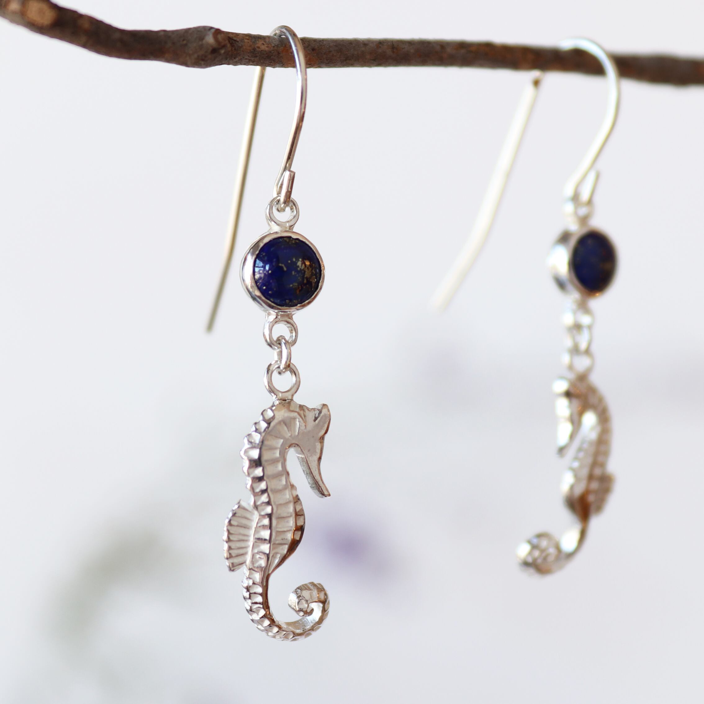 深い青が美しいラピスラズリを合わせてピアスに仕上げました。