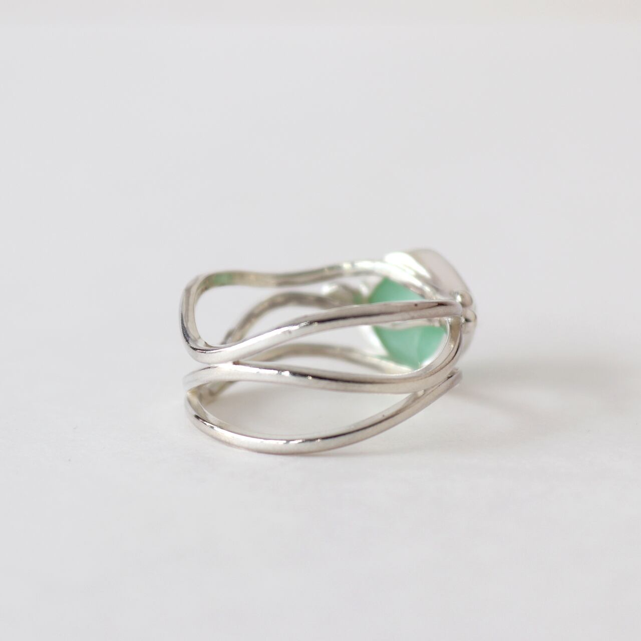 波うちぎわの水面をイメージし、発色の美しい淡翠色のひすいを