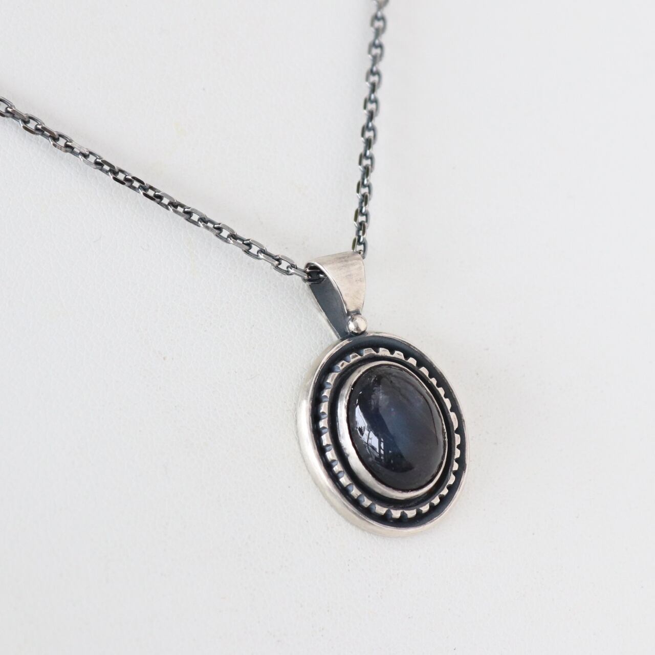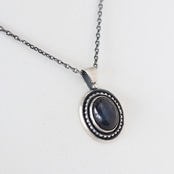 石の中にブルーを宿したスペクトロライトを、シンプルなペンダントトップに仕上げました。